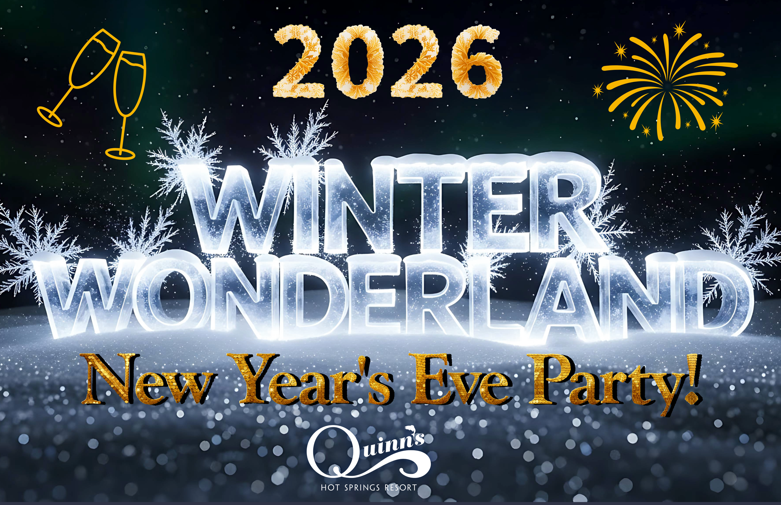 Each party guest has the chance to WIN!!! Each guest that has purchased a New Year’s Eve ticket or lodging package has the chance to win one of the following: a) One night of lodging at Quinn’s, b) a $100 Quinn’s gift card, c) 2 swim passes to soak at Quinn’s. Winners will be drawn at 11pm during the New Year’s Eve party (winners need not be present to win).